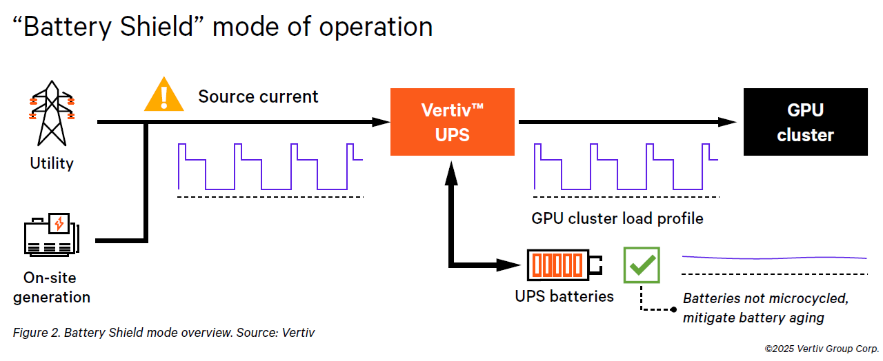 To address this, Vertiv has introduced two advanced control features for uninterruptible power supplies (UPS) designed to actively manage these extreme power variations: Battery Shield and Input Power Smoothing (IPS) . These features work together to ensure stability, protect infrastructure, and preserve backup power integrity.